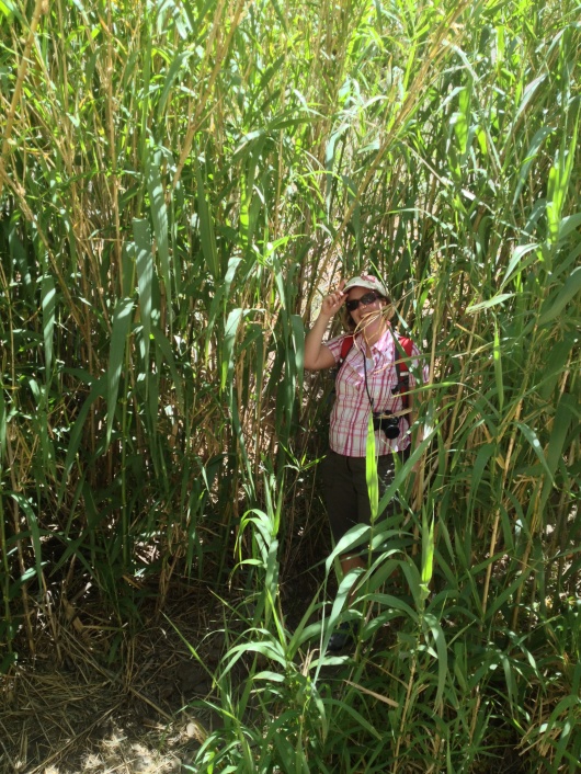 Der Abstieg begann mit einem Staubigen Trampelpfad, auf dem es serpentinenartig in die Tiefe ging. Der Pflanzenwuchs war recht trocken und dünn. Nach mehreren hundert Metern und je tiefer wir kamen, desto grüner und wuchtiger wurde der Pflanzenbewuchs, unter anderem mussten wir uns durch Bambuswäldchen schlagen. Hier und da konnten wir das Plätschern von Wasser vernehmen, jedoch haben wir noch keine Pfützen gesehen. Die Landschaft wechselte sich permanent ab, mal waren es staubige Passagen, dann wieder sattgrüne Wäldchen, die dann wieder von großen steinigen Brocken ausgetauscht wurden. Die meiste Zeit hatten wir das Gefühl, es geht bergab, aber nach ungefähr der Hälfte des Weges kamen immer mal wieder Aufstiege hinzu, wenn wir große Hindernisse um(über)wandern mussten. Da war auch hin und wieder der Einsatz aller vier Extremitäten von Nöten um irgendwo hinauf oder hinab zu kommen. Hin und wieder haben wir auch ein Kleines Grüppchen von Wanderern getroffen, die wir überholt haben, ab und an wurden wir wiederum von Wanderern überholt. Aber auf die Gruppe der älteren Wanderer sind wir nicht aufgelaufen...